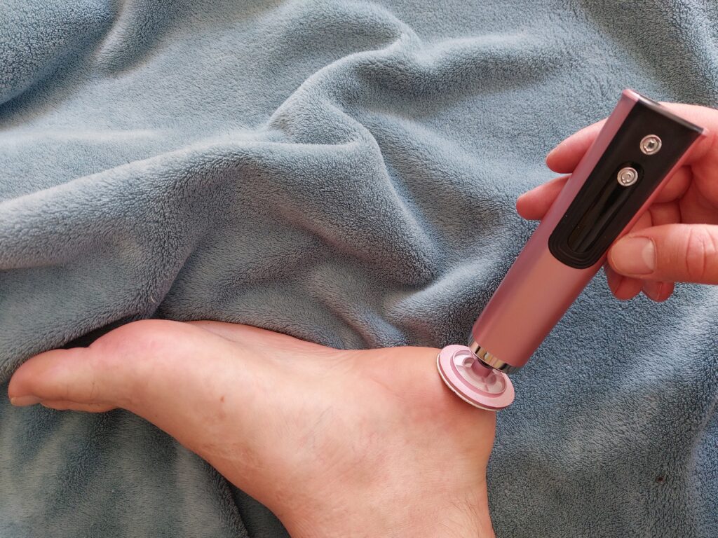 Bardzo mocny sprzęt, używam od 2 tygodni i faktycznie widać bardzo dużą różnicę. Przed użyciem mocze nogi a na koniec używam kremu. Efekt jest świetny. Co do jakości - to zaskoczeznie na plus - wygląda na porządny sprzęt a nie tanią chińszczyznę. A największy plus to dlugi czas bez łądowania i to że jes bezprzewodowy.